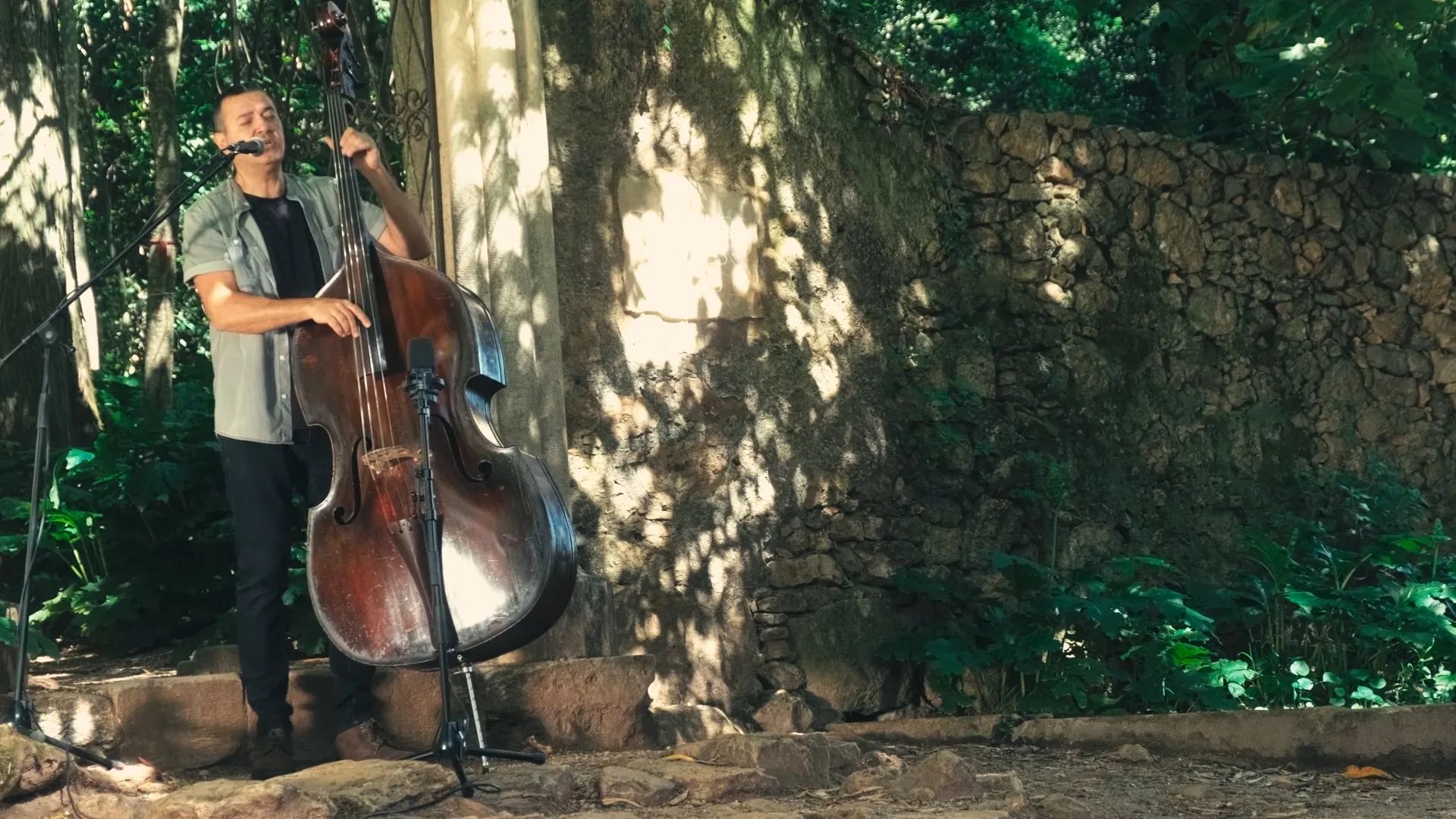 Miguel Calhaz conhece bem as curvas do contrabaixo, são já uma extensão do seu corpo.